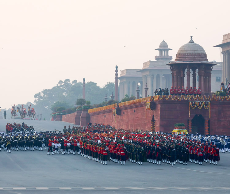 The ceremony began with the massed band’s ‘Kadam Kadam Badhaye Ja’ tune, followed by captivating tunes such as ‘Amar Bharati,’ ‘Indradhanush,’ ‘Jai Janam Bhumi,’ ‘Nati in Himalayan Valley,’ ‘Ganga Jamuna’ and ‘Veer Siachen’ by the Pipes & Drums band. The CAPF bands played ‘Vijay Bharat,’ ‘Rajasthan Troops,’ ‘Aye Watan Tere Liye and ‘Bharat Jawan.’