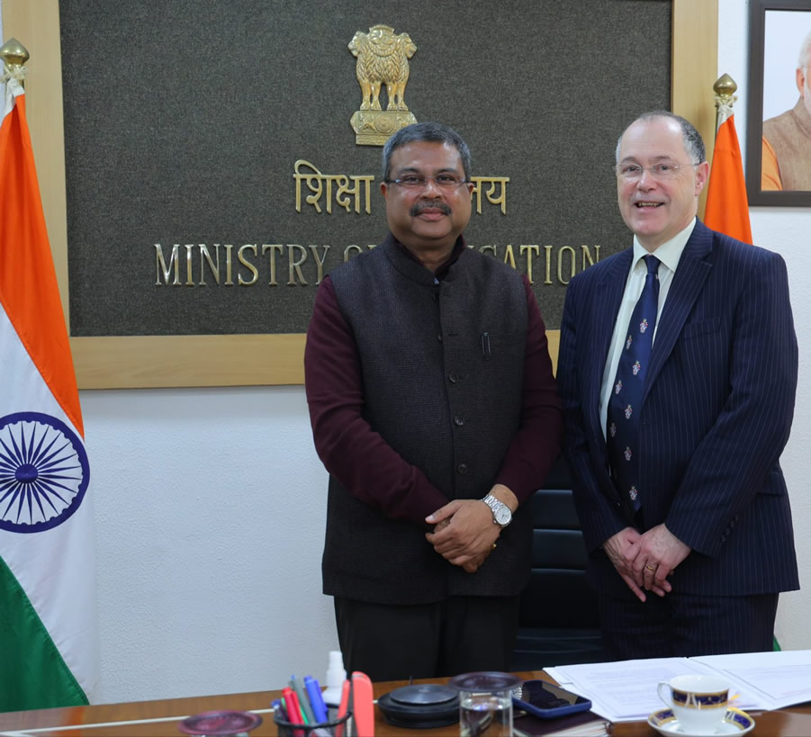 New Delhi, India, January 31, 2025 — Union Minister for Education Dharmendra Pradhan convened a meeting today in New Delhi with a delegation from the University of Southampton and representatives from the British Council in India. The meeting included the participation of Vineet Joshi, Secretary of the Department of Higher Education; Professor Mark E. Smith, President and Vice-Chancellor of the University of Southampton; and Ms. Alison Barrett MBE, Country Director of the British Council in India, along with various officials from the Ministry of Education.