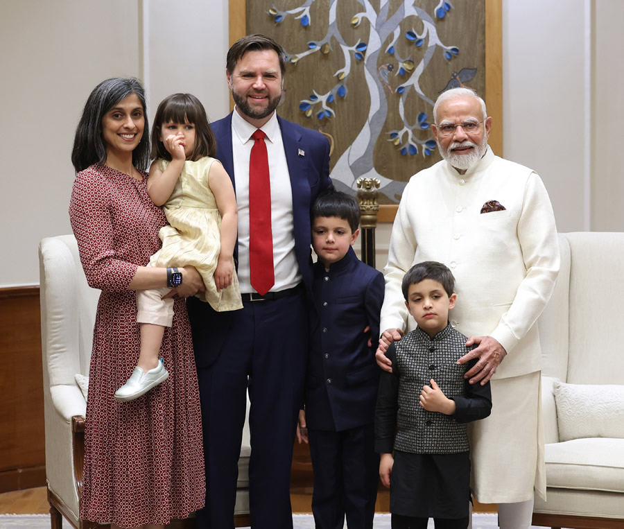 New Delhi, India, April 22, 2025 — Prime Minister Narendra Modi met with the Vice President of the United States, the Honorable J.D. Vance, the Second Lady, Mrs. Usha Vance, their children, and senior members of the U.S. Administration.