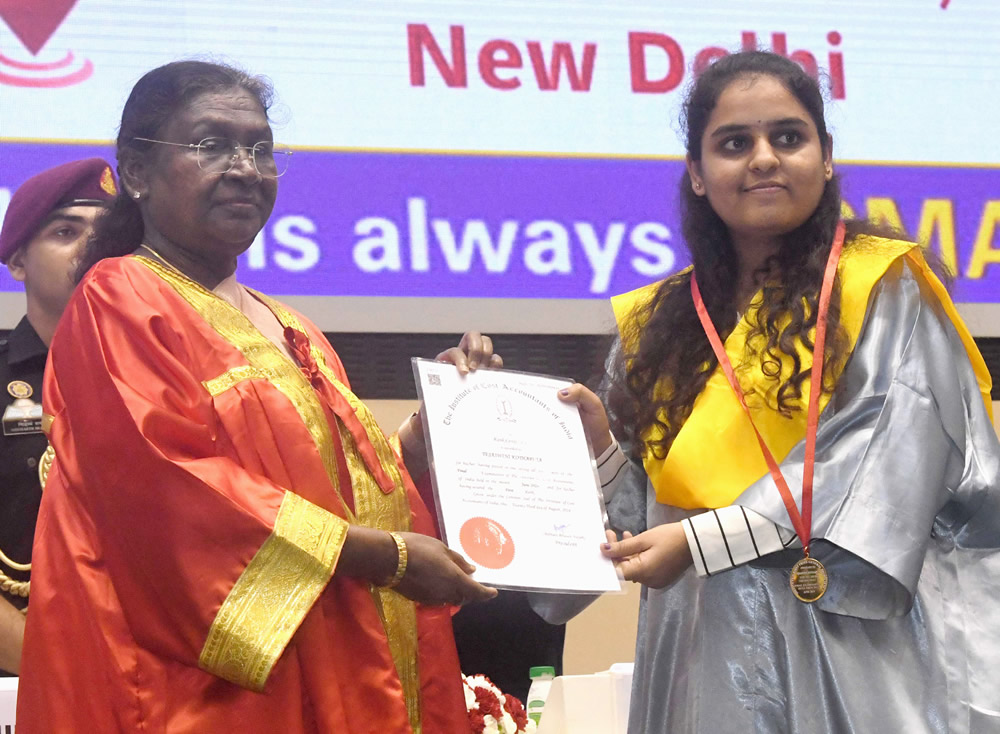 The President advised students to keep in mind that their responsibilities extend far beyond financial accounting. As cost accountants, they are uniquely positioned to contribute to India’s transformation into a Viksit Bharat by 2047. She expressed confidence that the education imparted by ICMAI will enable them to become not only successful professionals but also nation-builders. She urged them not only to focus on profit but also to consider the social and environmental impacts of their decisions and to utilize their skills to help businesses and the economy become more sustainable and equitable.