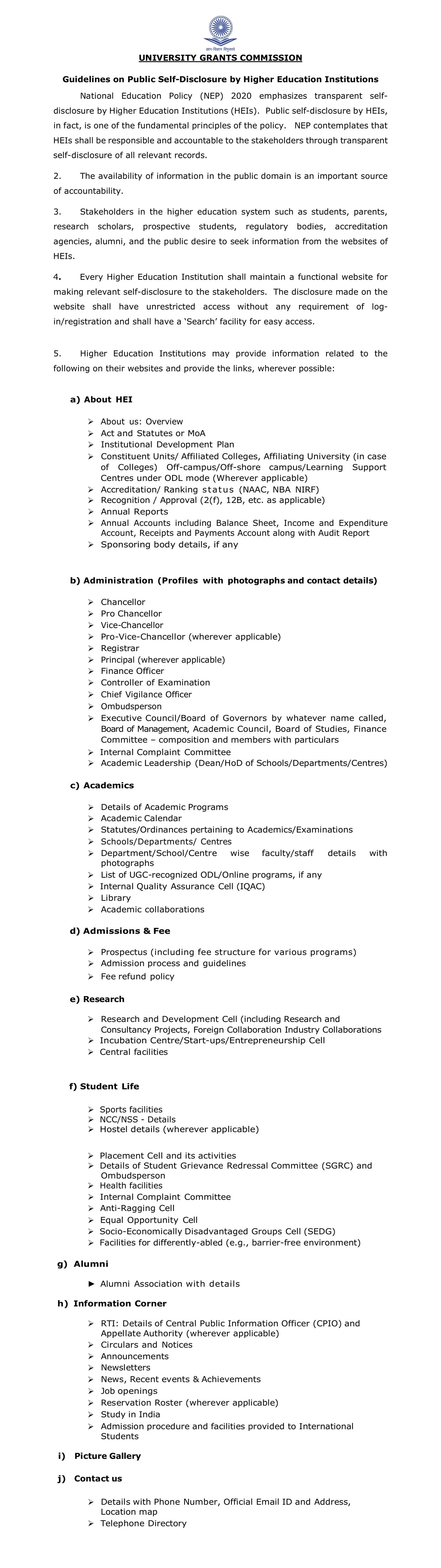 – Click here to access the UGC Guidelines for Public Self-Disclosure by Higher Education Institutions.