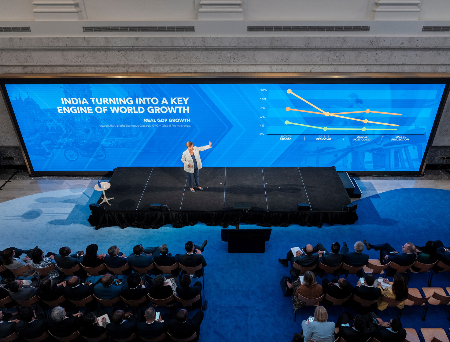 - She noted that India is emerging as a vital growth driver, especially as China’s economic growth slows down.