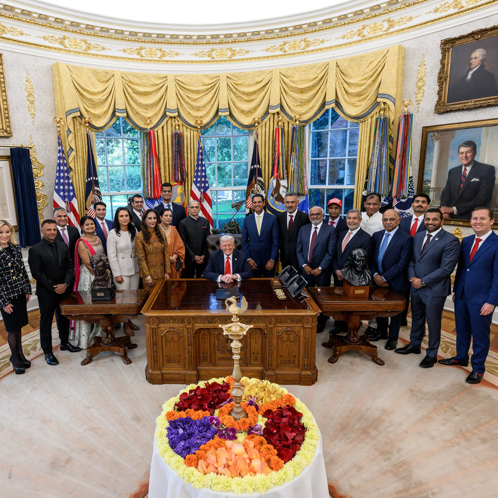 Photos: President Donald Trump participates in a Diwali celebration, Tuesday, October 21, 2025, in the Oval Office. (Official White House Photos by Molly Riley).