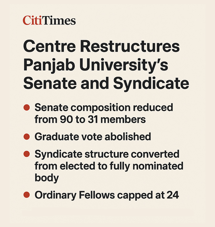 The Syndicate, acting as the executive arm of the Senate, will now primarily consist of nominated and ex officio members instead of elected representatives. This group will include officials from the Chandigarh Administration, university authorities, and nominees appointed by the Vice-Chancellor.