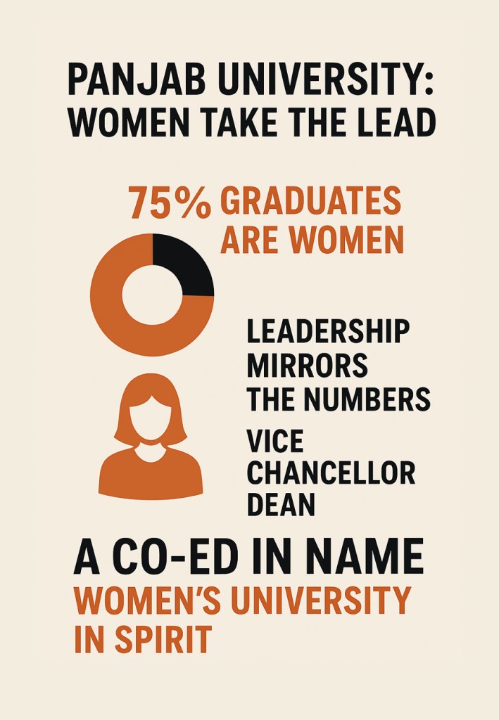 Panjab University today stands as a co-ed institution that feels like a women’s university in spirit. It is a powerful emblem of how education can tilt the scales of empowerment and reshape the narrative of leadership in India’s universities.