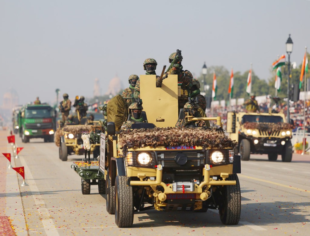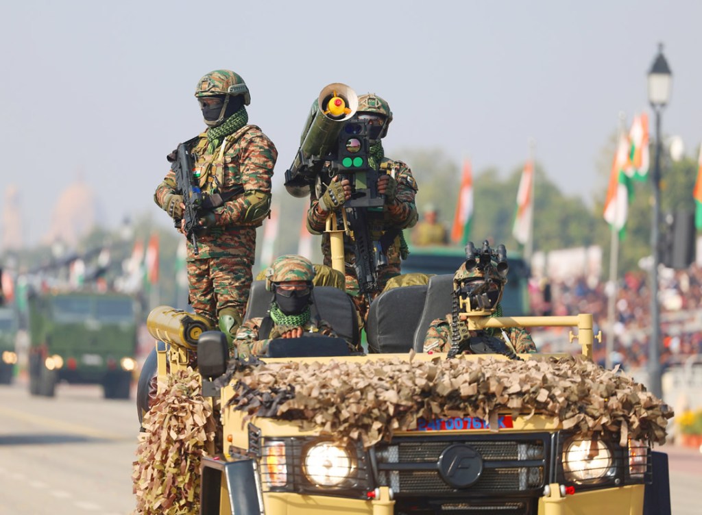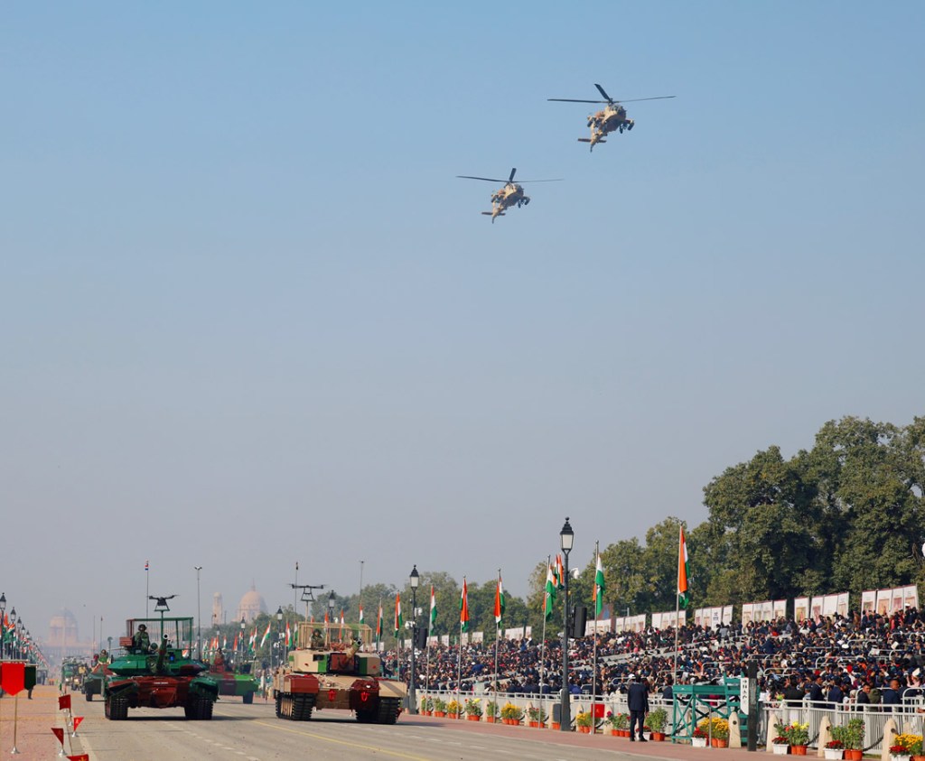 The parade featured impeccably synchronized columns of soldiers marching in lockstep, their uniforms crisp and movements precise. Following them were formidable displays of military capability: armored vehicles, tanks, mobile missile systems, advanced radars, and command units rolled past the stands, underscoring India’s evolving defence preparedness. Adding drama to the spectacle, fighter jets thundered overhead in tight formations, painting the winter sky with speed and sound.