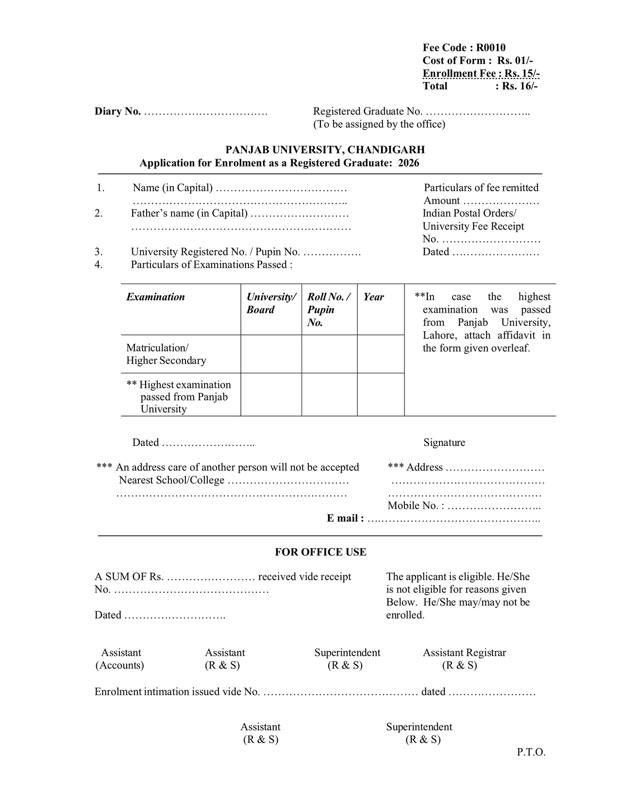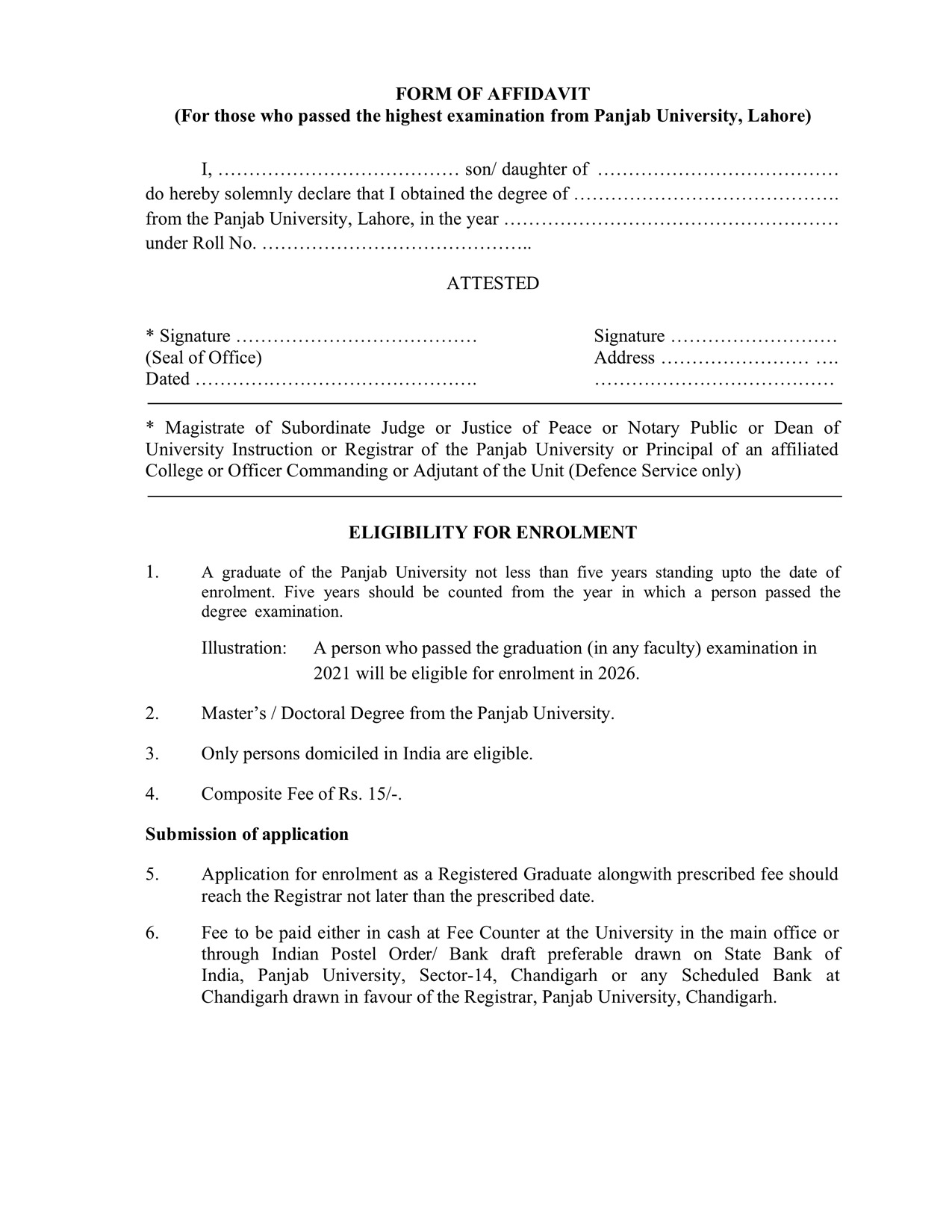- PU Registered Graduate Enrollment 2026 — Affidavit and Eligibility Criteria