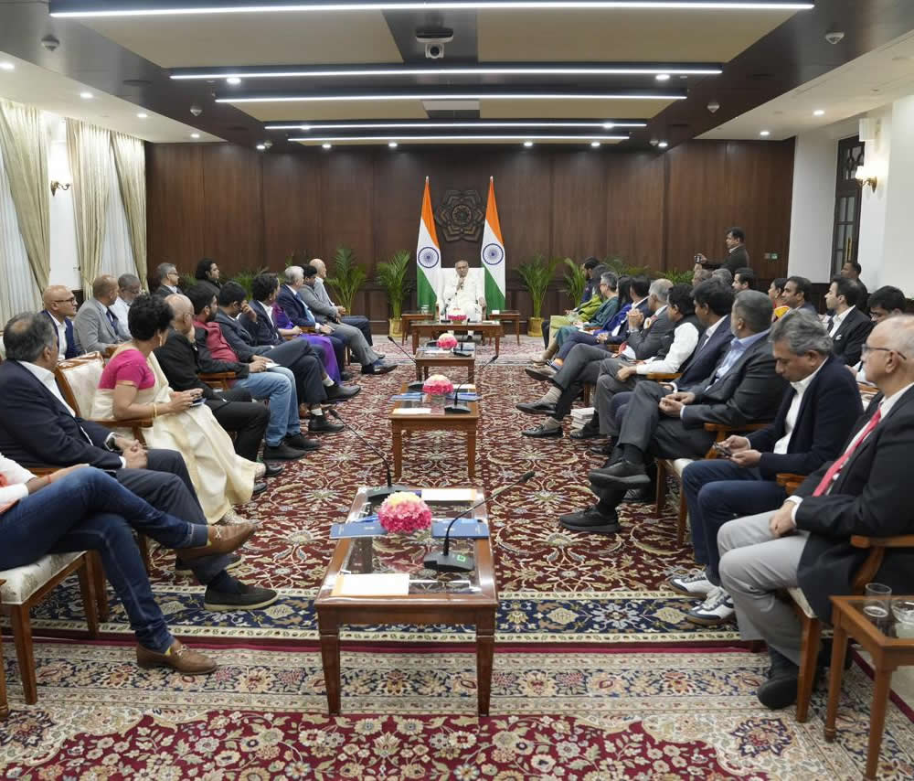 The Vice-President met a group of CEOs and delegates attending the India AI Impact Summit 2026 at Uprashtrapati Bhavan, where discussions centred on how AI is reshaping workplaces and unlocking new possibilities for innovation.