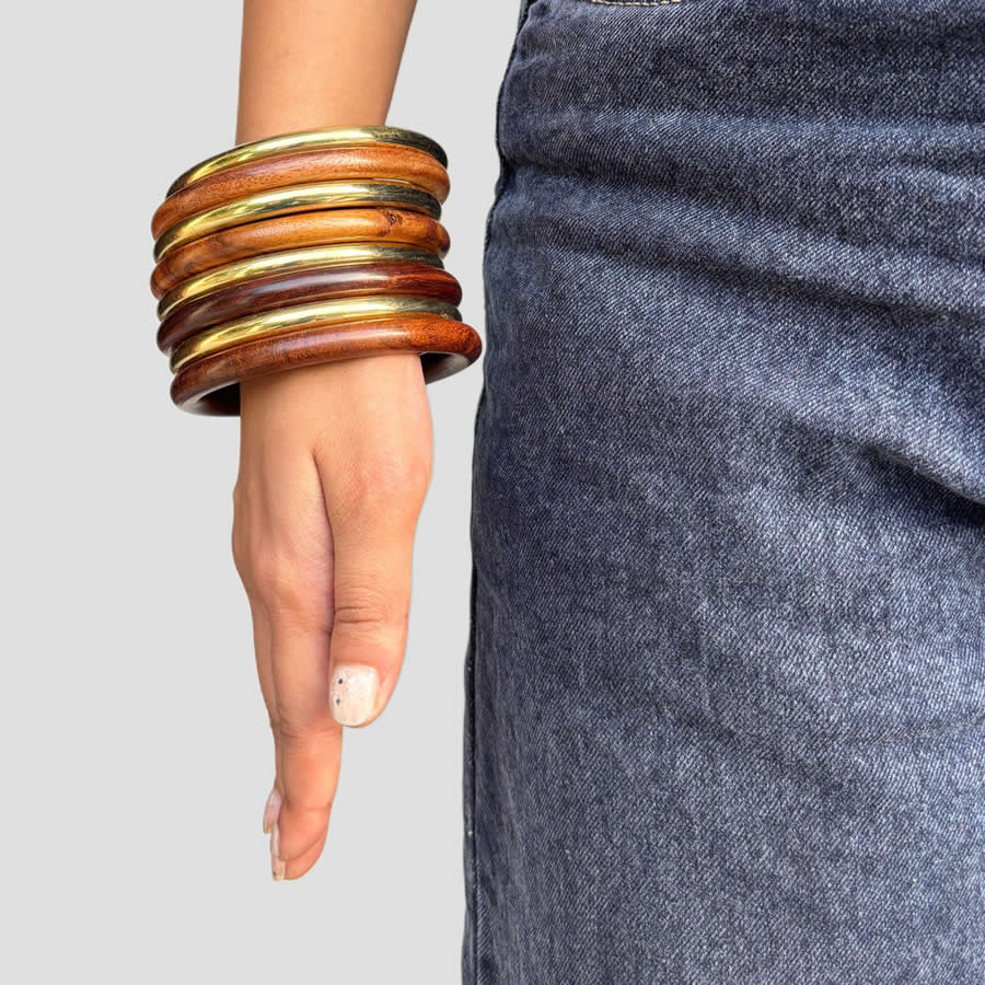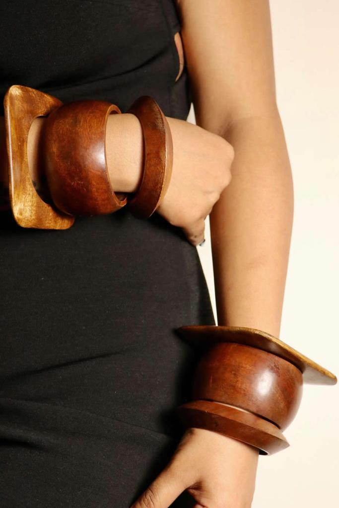 Accessories in S/S 2026 aren’t an afterthought—they’re central to the narrative. Sculptural jewelry dominates, with shell motifs appearing across necklaces, earrings, and statement pendants. Oversized bangles in mixed materials—metal and wood—add a tactile boldness.